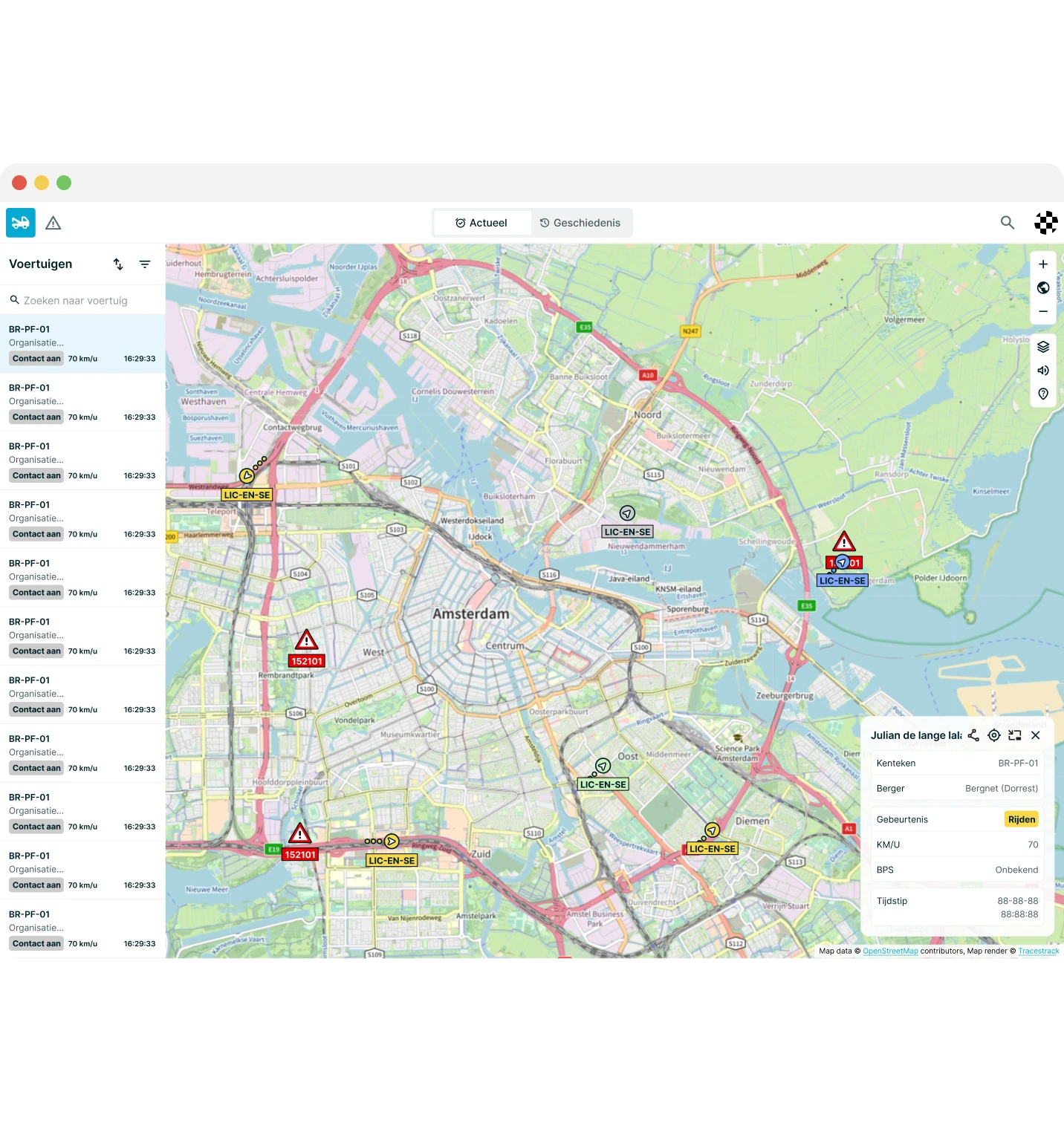 Alle betrokken bergingsvoertuigen zijn uitgevoerd met een tracker. Deze tracker verstuurt - op basis van bepaalde configuratie parameters - voertuigsignalen naar het platform. Denk hierbij aan de GPS-locatie of de status van het voertuig. Door het aantal voertuigen dat actief is zijn dit rustig meer dan 30 miljoen voertuigsignalen per maand, meer dan 10 per seconde. Dit levert een grote bak met data op die relevant is voor de berekening van aanrijdtijden.