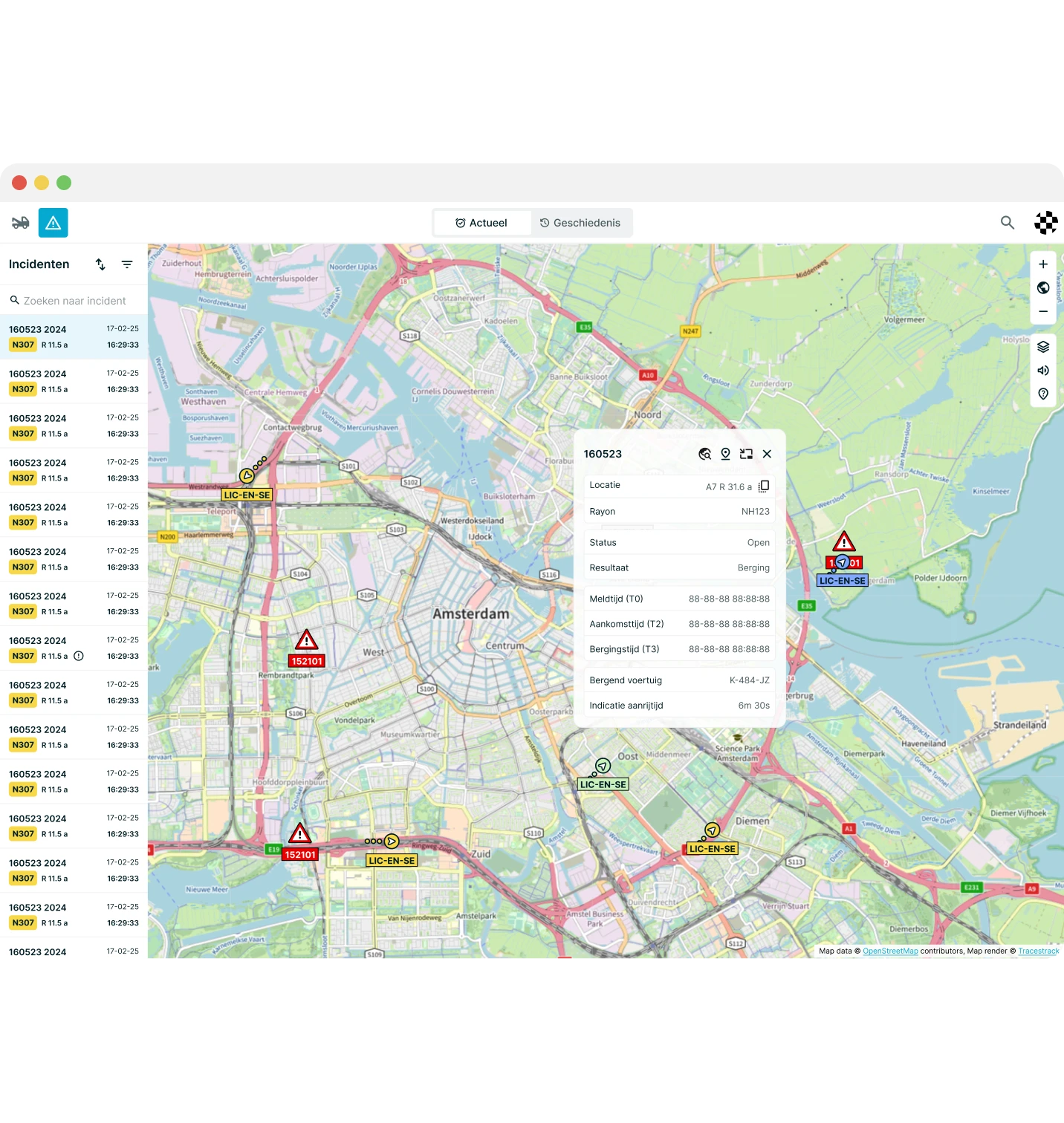 False positives: Het systeem filtert 'false positives' uit. Een berger die toevallig langs een incident rijdt zonder te stoppen, wordt bijvoorbeeld niet meegeteld.