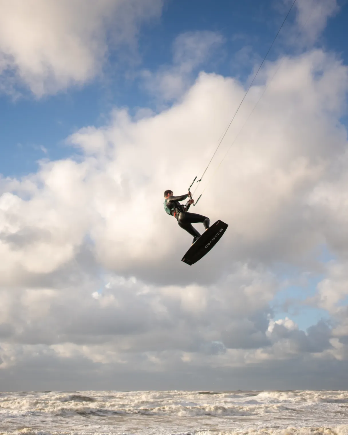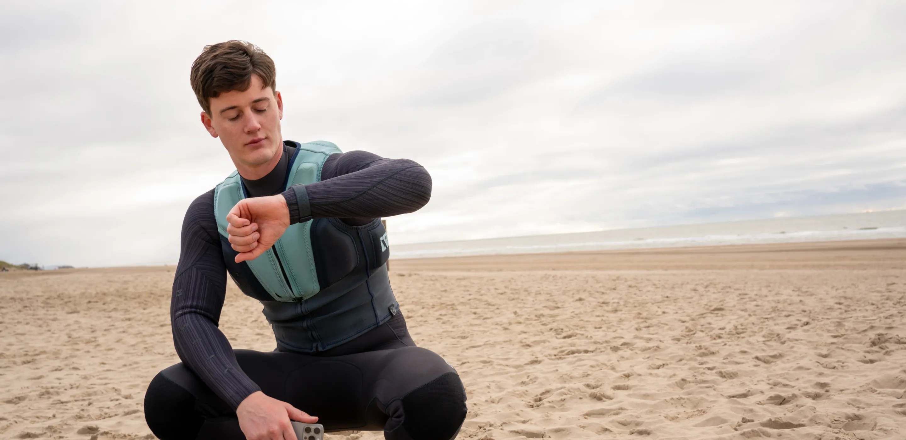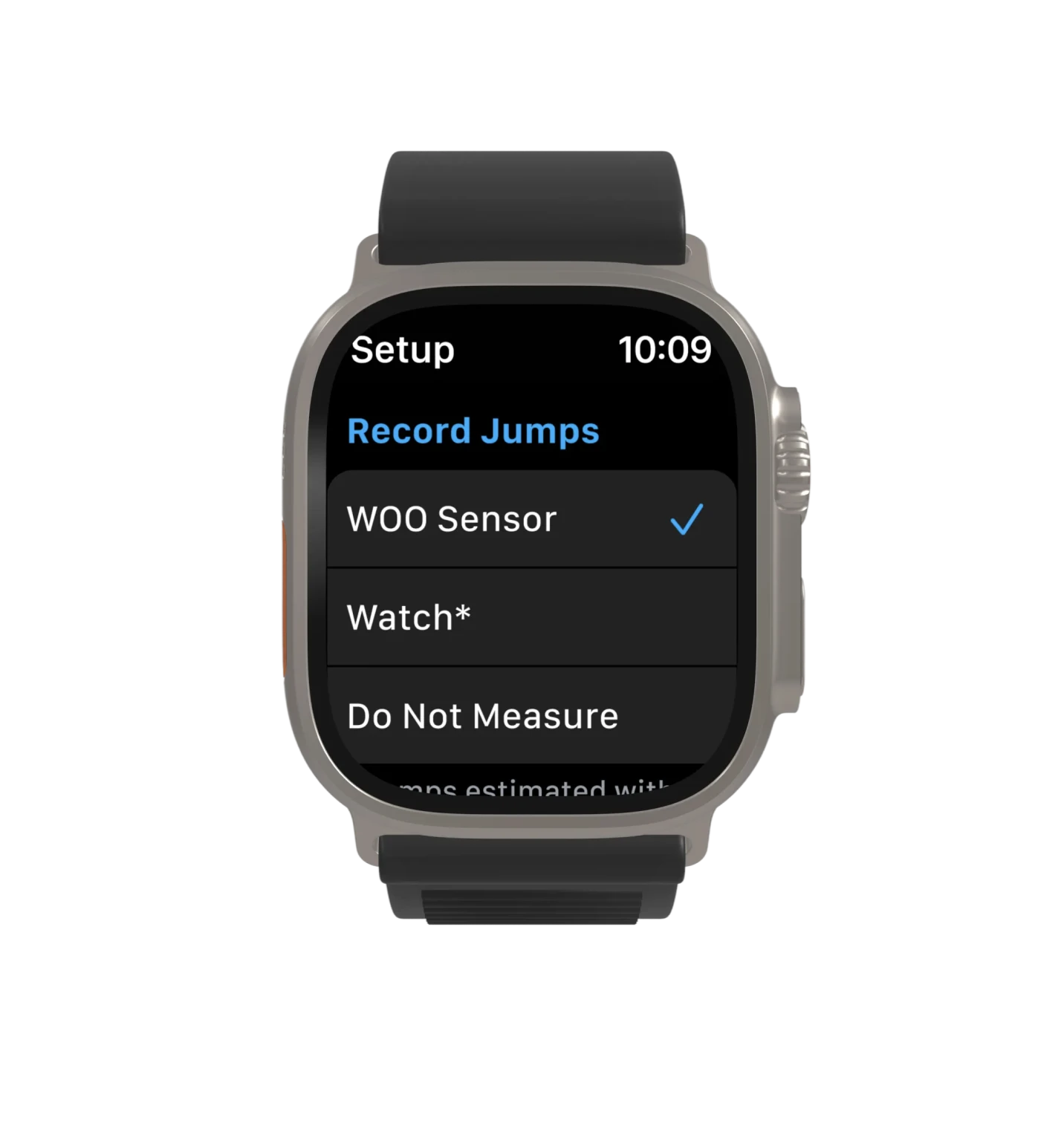 Met de WOO Smartwatch app registreert een gebruiker data over zijn sprongen tijdens een kitesurfsessie en toont informatie over de hoogte, duur en afstand van een sprong op de smartwatch.